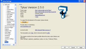 7plus x64 is a free open-source program which aspires to make working with Windows as comfortable as possible. The feature set it adds to Windows ranges from interface extensions to the explorer to highly specialized solutions for all common tasks, with the goal of reducing the work load for the user. This feature-rich system, powered by Autohotkey, provides very powerful configuration capabilities to suit the needs you have and those that you have but not know of yet!