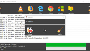 The most efficent cleaning software for Windows 10. The first anti-forensics software focused on the security and privacy of downloaded media data. Your downloaded music, images or videos are only your business, and ANTIFOR guards your privacy. With ANTIFOR you can free cache, delete cookies, clear Windows, Internet and VLC history, shred temporary files and dump junk you didn't know was there. Beyond simply deleting files, ANTIFOR includes advanced features such as shredding files to prevent recovery, wiping free disk space to hide traces of files deleted by other applications,and vacuuming Firefox to restore it as it was when first installed.