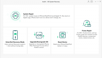 tags: AnyFix, repair iPhone/iPad/iPod touch/Apple TV system issues, repair iTunes errors, enter/exit recovery mode, upgrade/downgrade iOS, reset device