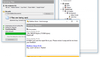 Modern instant messenger for secure text messaging and file transfer for office and corporate use. Bopup Messenger supports broadcast (group) and offline messaging, it perfectly works on domain networks with Active Directory authentication. The messenger encrypts all conversations and documents that are logged on a central IM server. On-premise messaging server also offers functions for management of user's settings and for IM client branding. The messenger has a classic interface with Contact List and opens separate dialog windows for each conversation. Text of outgoing messages can be styled with font and color, and by inserting links and graphic emotions. Since the application works within a central messaging server then messages can be sent even remote recipients are in offline. The server stores and delivers IM and documents once a remote user goes online. Since Bopup Messenger is built for office and corporate use then it can be used on Terminal Server and Citrix environment. This IM app also supports messaging over Internet so it is possible to unite employees from different branches and offices of a company into private and managed IM network. Users can also chat on mobile devices by using instant messenger for Android platform.