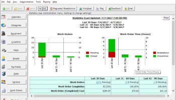 Use FastMaint CMMS Maintenance Management software for preventive & breakdown maintenance of equipment & facilities. Track missed work, costs and statistics. Send work orders to maintenance techs by email or SMS text messages. Support one or more users. Download, install & try out in a few minutes. Can be installed & un-installed even regular Windows users (computer admin rights not needed). Fast to setup & use. Good for industrial plants, commercial facilities and utility operations. FastMaint offers a variety of reports many of which can be customized to your needs. Especially useful is the one page Statistics report that you can use to find pending work orders, which equipment needs most work and compare performance with prior periods. Track and estimate labor costs, material costs and inventory needs. Define global or individual working calendars with days off and holidays. Detect schedule conflicts and reduce overtime costs. Plan maintenance for any given period, email or print work orders and collect feedback. Use work order history to find problem patterns and more. FastMaint comes with a built-in Microsoft Jet (Access) database so many third party tools such as report writers, data extraction utilities and so on can extract information and integrate with it. Microsoft Access is not needed to use FastMaint. FastMaint CMMS Professional adds additional features such as multi-user support, processing of emailed work order updates from technicians and a fast feedback feature that allows maintenance personnel to quickly identify and update pending work orders. Plus one has the option of using Microsoft SQL Server for your maintenance database. FastMaint CMMS Web is the web browser based version of FastMaint CMMS that can be hosted on its built-in web server OR on Microsoft's Internet Information Server. It too has the option of using Microsoft SQL Server for your maintenance database. Cloud hosted also available.