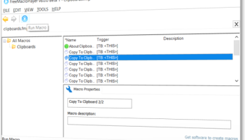 FreeMacroPlayer is a free utility that that plays back macros created in Macro Toolworks, Perfect Keyboard, ClickyMouse, MacroToolbar or WinScheduler macro programs. The FreeMacroPlayer is completely free for anyone (personal use, business use, government use) and can be freely distributed without any restrictions, including distribution with other commercial products.