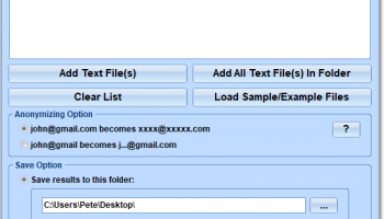 This software offers a solution to users who want to mask email addresses in multiple text files. The user simply chooses the file/s or an entire folder to be processed before starting the process. Using this software, large numbers of email addresses can be quickly anonymized to keep them protected from view.