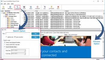 IncrediMail to Outlook Converter free migration tool is an automated utility that provides facility to the users to export IncrediMail to Outlook PST, IncrediMail to MSG, IncrediMail to EML, IncrediMail to EMLX, IncrediMail to MBOX, IncrediMail to PDF, IncrediMail to HTML, IncrediMail to MBX, IncrediMail to RTF, IncrediMail to CSV. It is an integration of various beneficial features such as it permits to export IncrediMail contacts to Outlook without any limitations. The software allows to transfer emails from IncrediMail to various email clients such as import IncrediMail to Thunderbird, IncrediMail to Outlook, IncrediMail to Windows Live Mail, etc. IncrediMail Migrator supports all the versions of MS Outlook to convert IncrediMail 2.5 to Outlook such as Outlook 2019, Outlook 2016, Outlook 2013, Outlook 2010, etc. This utility supports batch conversion so that the users can convert .IMM and .IML IncrediMail emails to desired file formats and email clients in bulk. This helps to export multiple IncrediMail messages all at once and saves users time and efforts for converting emails one by one. It also offers a free preview option using which one can analyze IncrediMail data ant attachments before starting IncrediMail file conversion. Along with this, the software also facilitates to search for a particular item with the Find option. The user can search the emails with a particular date range. Throughout IncrediMail to Outlook conversion, the tool retains all the email attributes such as To, CC, BCC, From, Subject, hyperlinks, embedded attachments, font style, images, etc. It ensures a safe IncrediMail conversion and guarantees to maintain the integrity of IncrediMail data. IncrediMail migrator offers multiple file naming conventions to arrange the output data such as Original File Name, Subject+Date(dd-mm-yyyy), From+Subject+Date(yyyy-mm-dd), From+Subject+Date(dd-mm-yyyy), Date(dd-mm-yyyy)+From+Subject, Date(yyyy-mm-dd hh:mm:ss)+From+Subject, etc.