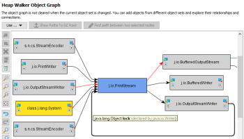 Shows a graph of references for individual objects and offers a "show path to garbage collector root" functionality. Also offers cumulated views for incoming and outgoing references.
