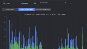 Campaigns you create with Linked Helper allow various actions on LinkedIn: sending invitations and follow-ups, connecting to 1st-degree contacts, data scraping and exporting profile information, scouting contacts on event pages, creating message sequences, increasing acceptance rate from warmed-up leads, mutual endorsement sessions with 1st degree contacts, sending event invitations, following profiles, and this is far from being completed.
