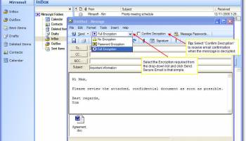 Mirramail™ is a fully featured email program, like Outlook™ or Outlook Express™, except the emails you send can be easily secured with 256 bit AES Encryption at the click of a button. The security provided by Mirramail is not just for sending or receiving messages - the messages stored on your computer are also secured with 256-bit AES encryption.