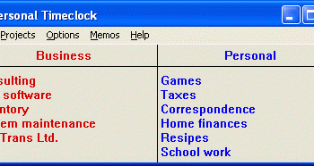 Do you use your computer for business as well as pleasure? Then Personal Timeclock can save you money at tax time! Do you use your computer to do work on behalf of clients? Then Personal Timeclock can help you bill your clients accurately. Do you have employees that use computers? Personal Timeclock can keep track of their time, too. Personal Timeclock is a Windows XP/Vista/Win7/Win8/Win10 program that keeps track of time you spend on your computer. Time is charged to one or more "projects" that you chose by "punching in" when you begin work on each project. In addition, projects may be grouped into different "categories" (e.g. business and pleasure) of your choice. To give one example, you can create a category for each of your clients, and a project for each different type of work you perform. To keep track of your time, simply click on the proper project when you begin working on it. If you wish, you can add a memo to further describe your work. You can also add an hourly rate to each project and category and include the amount on reports. Personal Timeclock Reporter produces detail reports, which list the specifics of your work, and summary reports, which summarize your work by project and by category. Both types of reports can be customized to show exactly the data you want. For example, if you categorize your projects as business and non-business, the summary report will give the hours and percentage of time spent in each category. This is the figure that you need for IRS form 4562 Depreciation and Amortization, lines 24c and 25c. In addition, you can answer "Yes" on line 23b which asks whether you have written evidence to support the claimed business use: this may reduce the chances that your return will be selected for audit. [The line numbers were from 2000 tax forms, and may differ in later years.] There are other time manager programs, but Personal Timeclock is simple (so simple that you will use it),and it does the job well.