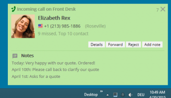 PhoneMondo is a cloud CTI and callerID notification solution that helps making telephony much more effective in your company. When the phone rings (either Voip, landline or on Android mobile), PhoneMondo looks up data in different data sources like online phone directories and CRM systems (i.e. Salesforce.com, Microsoft Outlook). It then shows extra information for the call to you on your PC screen, in your web browser and/or on your mobile phone. So you can decide before picking up if you want to talk to the caller or not. Calls can be rejected and forwarded with a click. Notes, tasks, opportunities and other helpful data will make it more easy to make the call a successful call instead of just wasting time while searching for the data of the caller or letting the caller spell his name and address. All calls are stored in a call history in the cloud. Various reports help understanding telephony usage in your company and to detect any problems, i.e. on which time of day do the customers have to wait too long until the call is picked up.