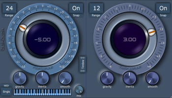Pitchwheel x64 was designed to be a VST plug-in that will change the pitch of a sound without changing it's length. It has a large, easy to use dial and simple parameters making it a fast and creative effect unit. It has a range of two semi-tones to two octaves, which gives you control from subtle tuning changes to wild swings of pitch. The user pointer acts as a desired pitch change, and the actual pitch is produced by smoothing and inertia controls.