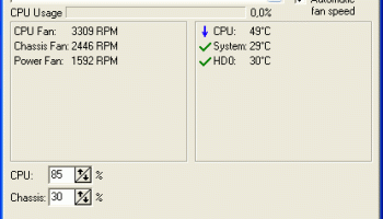 SpeedFan monitor temperatures from several sources. By properly configuring SpeedFan, you can let it change fan speeds based on system temperatures. When choosing parameters for the minimum and maximum fan speed, try to set them by hand (disable all the VARIATE FANs checkboxes) and listen to the noise. When you hear no noise from the fan then you can set that value as the minimum fan speed for that fan. I suggest to use 100 as the maximum value, unless you hear a lot of noise from it, in which case you might reduce the maximum speed to 95 or 90. You can set, say, 60 as the maximum value and, sometimes, I myself set it that way. Consider that when the WARNING temperature is reached, the program sets the fan speed to 100, whatever maximum speed you selected. One last word should be said regarding the USE FAN x listbox. In my pc, more than one temperature changes when a fan runs faster. You can configure on which fan every temperature should rely. On my system, TEMP1 and TEMP3 are both influenced by FAN1.