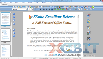 A number of available features give you a fine degree of control over the formatting of text, pages, sections of documents, and also entire documents. You may also save your documents in a variety of industry standard formats and even export them to pdf, jpg, bmp, png, gif, and our own presentation format ssp. Document compatibility with MS Office - { rtf, doc, txt, rtc, ssp }