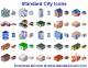 Create city maps that look perfect on screen and on paper. Standard City Icons come in a variety of sizes and resolutions, making city plans perfectly legible on any media from PDA ...